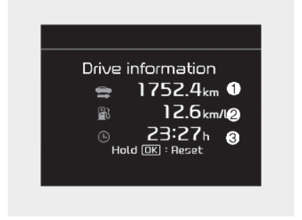 The Sportage GT Line S HEV for the year 2023. When utilising the trip computer in driving information mode, I used to drive and make intermittent stops throughout the day for various purposes such as pick-ups, drop-offs, and coffee breaks. As long as my stops did not exceed 4 hours at any given time, the trip computer would display the accumulated information for the entire day. Currently, if I stop and resume the vehicle, even after a minute, the information is being reset to zero each time. This is not desirable, as it should retain the prior information. I would want to know how to restore it to function with the 4-hour option. Please refer to the handbook for further information. Display of driving information This display provides trip distance (1), average fuel efficiency (2), and total driving time (3) data once each ignition cycle. Fuel economy is determined by calculating the distance a vehicle has travelled once it has exceeded 300 metres. The Driving Information will be reset four hours after the ignition has been off. Therefore, if the car ignition is activated within a time frame of 4 hours, the data will not be cleared. Pressing the "OK" button for a duration of 1 second or more after the Driving Information is shown will result in the reset of the shown information. Information will be gathered as long as the engine is running, regardless of whether the vehicle is in motion or not.