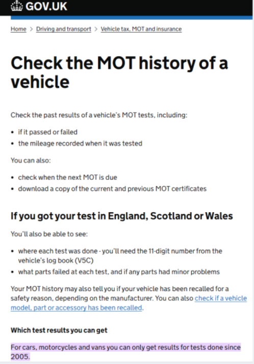 There is an issue with your car's online MOT results. The available records only date back to 2005, not 2015. Upon inspection, I have verified that my 1997 SL and many other automobiles I had in the past are included in the records starting from 2005 forward. As far as I know, the system also accommodates changes in the registration number when doing a search using the existing registration. -
