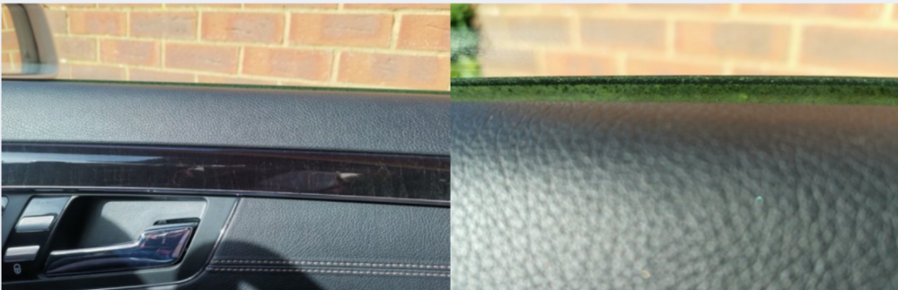 (S-Class W221, S-350L, 2011) A lot of green stuff (algae?) is growing on the inner rubbers (between the door and the window). These rubbers are securely attached to the windows, and I don't want to risk damaging them by prying them off in order to clean the inside. Is there a quick and simple method to make them black again?