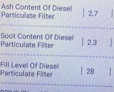 Here is a photograph taken after covering a distance of around 30 kilometres by driving. At the beginning of the journey, the soot level was 0% because it was immediately after the diesel particulate filter (DPF) was reset and cleaned. I am perplexed as to why the ash content is 2.7g, considering that the system was thoroughly cleaned and all values were reset to 0.00.